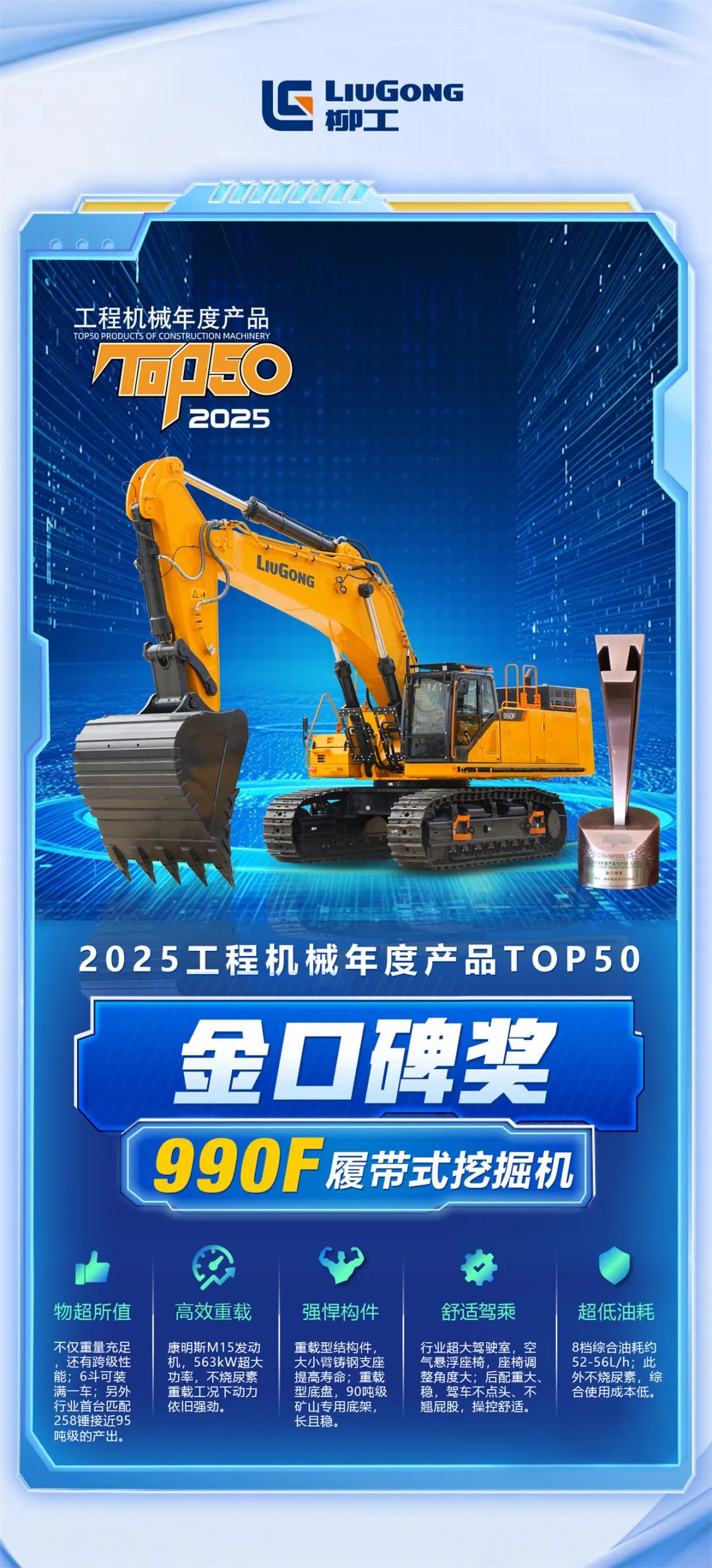 柳工狂攬“2025工程機械年度產品TOP50”四項大獎!