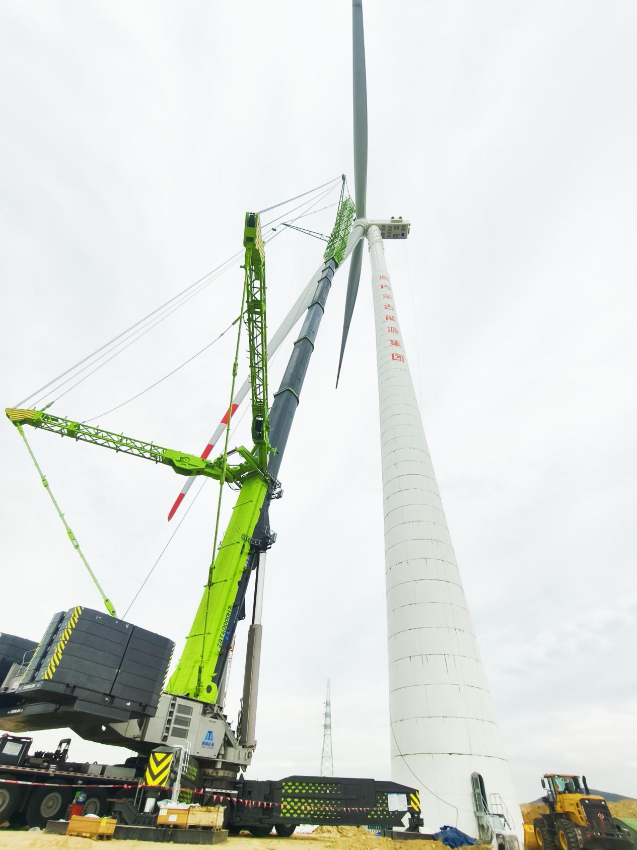 據了解,4000噸級全地面起重機是中聯重科繼2000噸級、2400噸級2次創造世界紀錄后,持續超越自我,第3次刷新世界紀錄的創新產品,創造了多項行業之最,整體技術及產品指標達到國際領先水平。它不僅是行業唯一滿足公路行駛法規標準的4000噸級全地面起重機,也是行業內唯一能滿足190米高度和16MW風機整體吊裝的輪式起重機,為我國風電建設的發展提供了堅實可靠的保障。